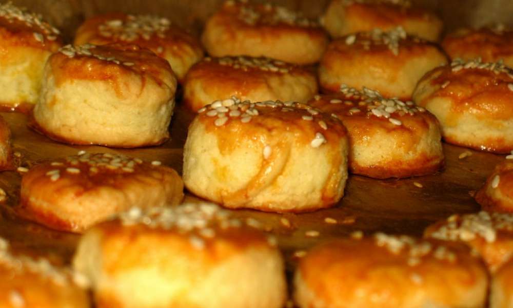 Kada smo povadili pogačice, u tepsiju stavimo papir za pečenje i na njega poslažemo iste. Ostavimo ih da odstoje nekih pola sata ili malo više. Nakon toga, namažemo ih umućenim celim jajetom i pospemo susamom.